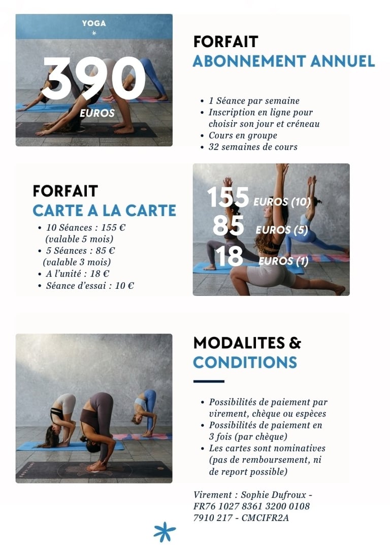 Prenez un temps de pause, un temps pour vous. Les cours de Yoga (Hatha Yoga) sont conçus pour vous aider à vous reconnecter à votre corps, à vos ressentis et à vous-même.